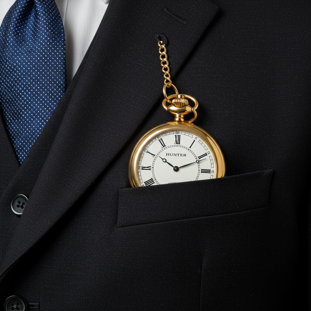 Pour que la montre de poche soit un atout et non une excentricité, son intégration doit être parfaite. Elle s’harmonise idéalement avec un costume deux ou trois pièces, où elle peut être attachée au gilet (veste sans manches) ou au revers de la veste via une chaînette adéquate. Si le contexte de l’entretien est moins formel, mais exige tout de même une « tenue smart casual », le gousset peut toujours être logé dans une poche de pantalon ou de veste, à condition que la chaîne soit discrète et ne tire pas sur le tissu.